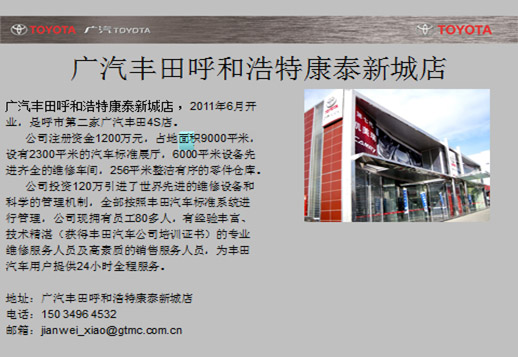 廣汽豐田呼和浩特康泰新城店 |