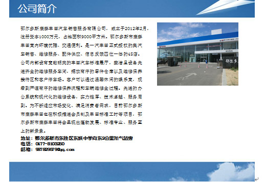 鄂爾多斯康泰豐田汽車銷售服務(wù)有限公司 |