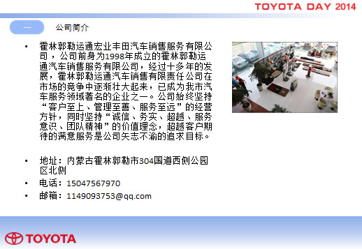 霍林郭勒運(yùn)通宏業(yè)豐田汽車銷售服務(wù)有限公司 |