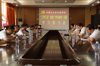 為深入貫徹自治區(qū)黨委組織部《關(guān)于認(rèn)真落實(shí)“四個(gè)一”要求深入扎實(shí)開展專題學(xué)習(xí)研討的通知》(內(nèi)組通字〔2015〕28號(hào))有關(guān)精神,筑牢“三嚴(yán)三實(shí)”思想根基、增強(qiáng)全校黨員干部思想自覺性和行動(dòng)自覺性,7月10日下午,交通樓A439會(huì)議室,圍繞“嚴(yán)以修身,加強(qiáng)黨性修養(yǎng),堅(jiān)定理想信念,把牢思想和行動(dòng)的‘總開關(guān)’”主題,我院召開“三嚴(yán)三實(shí)”教育“嚴(yán)以修身”專題學(xué)習(xí)研討會(huì)。
