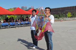 2016年5月16日下午,內(nèi)蒙古大學(xué)交通學(xué)院“手繪夢(mèng)想,放飛希望”自制風(fēng)箏大賽放飛儀式暨現(xiàn)場(chǎng)放飛競賽在南校區(qū)主樓廣場(chǎng)舉行。