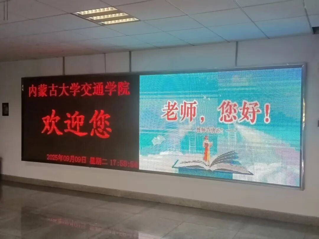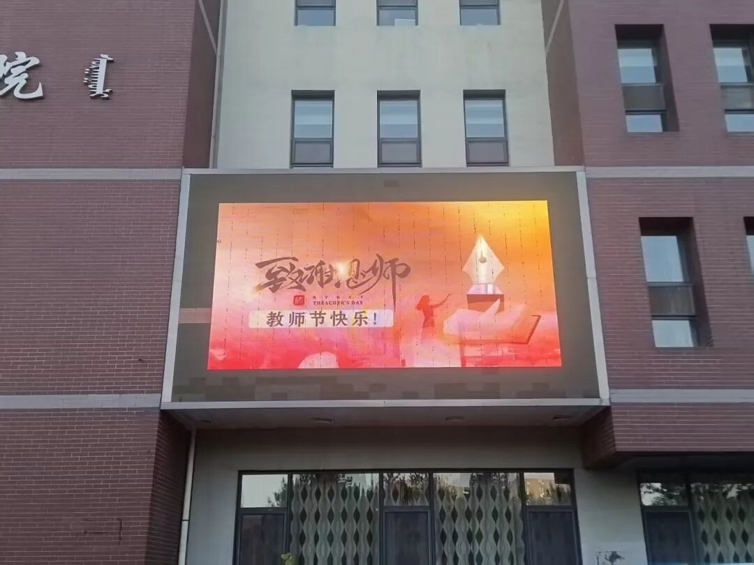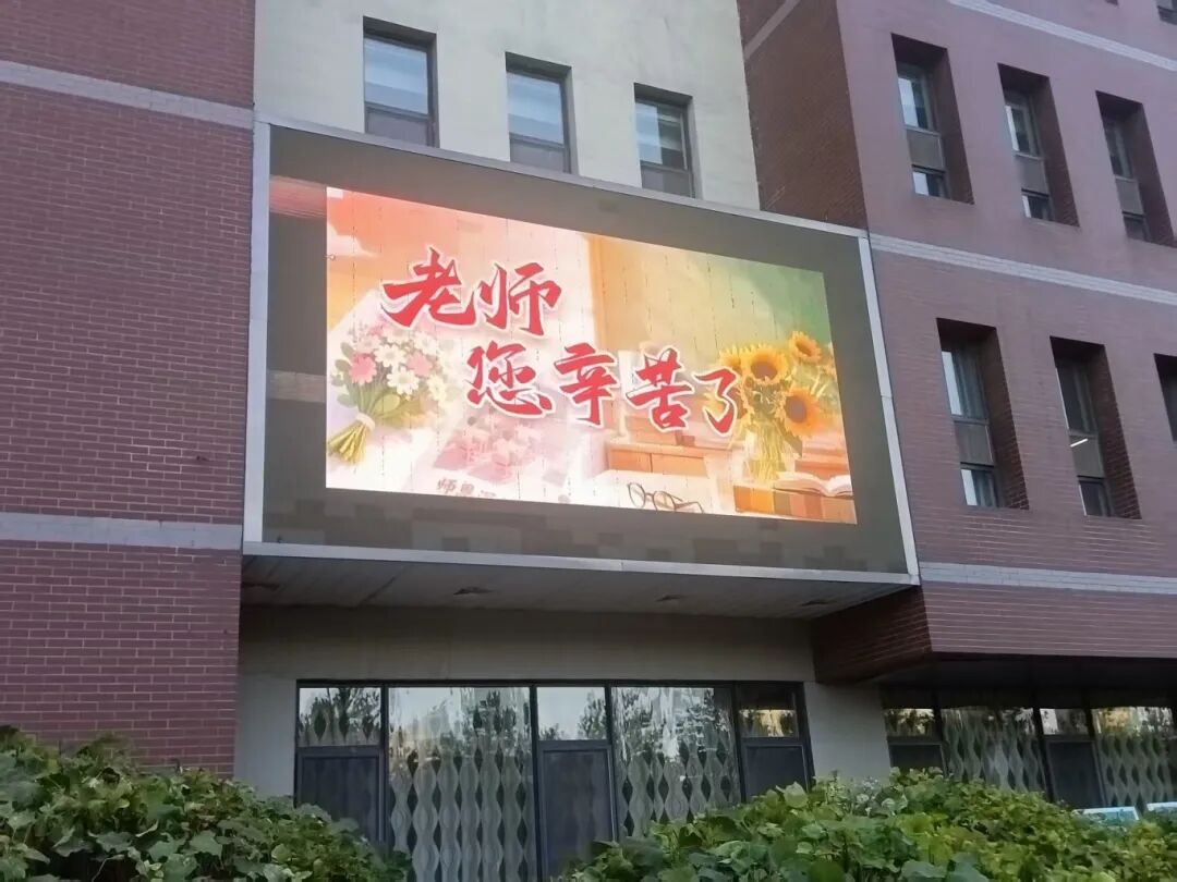 從9日晚開始,交通樓內(nèi)外五處LED顯示屏同時(shí)點(diǎn)亮,“老師,您好!”“老師,您辛苦啦!”“致敬恩師-教師節(jié)快樂(lè)”“祝全院教職工節(jié)日快樂(lè)!”等飽含深情的祝福語(yǔ)循環(huán)播放,營(yíng)造出濃厚的尊師重教氛圍。